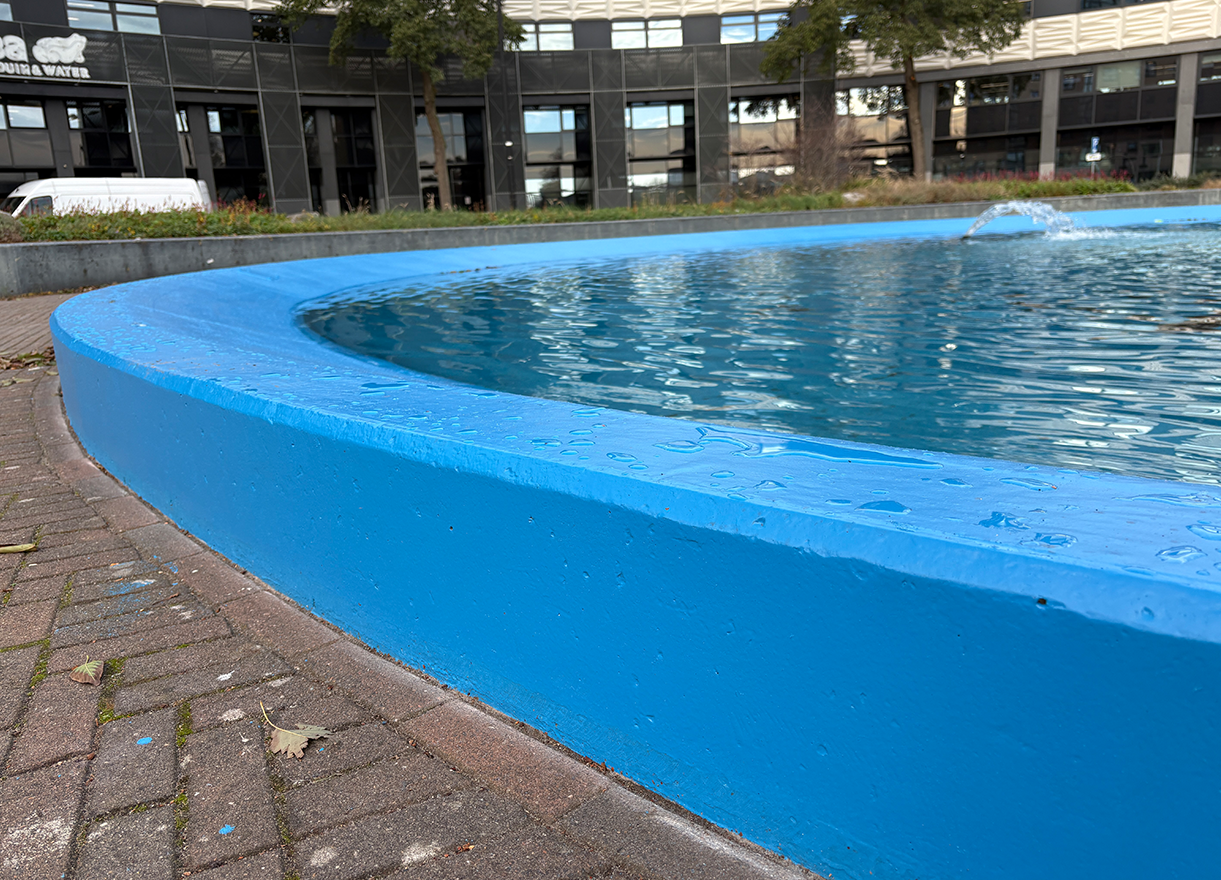 Het resultaat is een fontein die er niet alleen weer verzorgd uitziet, maar vooral langdurig beschermd is tegen de zware omstandigheden die in een permanent nat milieu optreden.