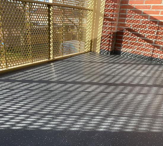 Een doorgestorte constructie welke gevoelig is voor weersinvloeden vraagt natuurlijk meer dan een simpele coating. Het Triflex BTS-P systeem, Kwartszand Grof biedt volledige bescherming van de onderliggende constructie, maar ook voldoende antislip. Niet geheel onbelangrijk op galerijen. En daarom is er gekozen voor het Triflex systeem.