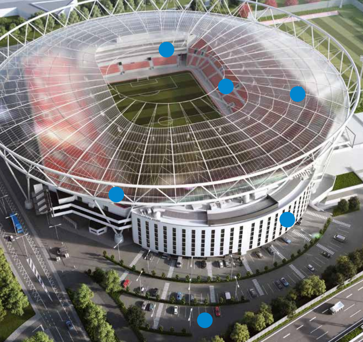 Sport- en evenementencomplexen hebben te maken met verschillende uitdagingen. Zo moeten ze onbeperkt gebruikt kunnen worden tijdens evenementdagen, moeten ze maximale veiligheidseisen voor bezoekers garanderen en het hoofd bieden aan de blootstelling aan grote bezoekersstromen. Triflex kan helpen om alle uitdagingen aan te gaan. Dit doen we voor verschillende onderdelen van het complex: