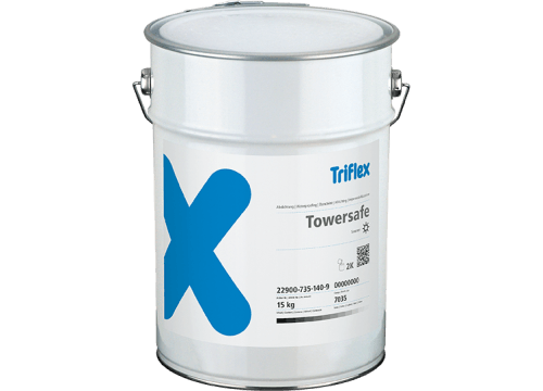Triflex Towersafe is een waterdichtingssysteem speciaal ontwikkeld voor windturbines. Een flexibele speciale vliesversterking zorgt voor blijvend elastische systeemeigenschappen. Door de vloeibare vorm kunnen opstanden, plooien en zelfs complexe details, zoals boutkooifunderingen, naadloos en zonder voegen waterdicht worden gemaakt. Met Triflex Towersafe wordt een hoogwaardige technische oplossing bereikt.