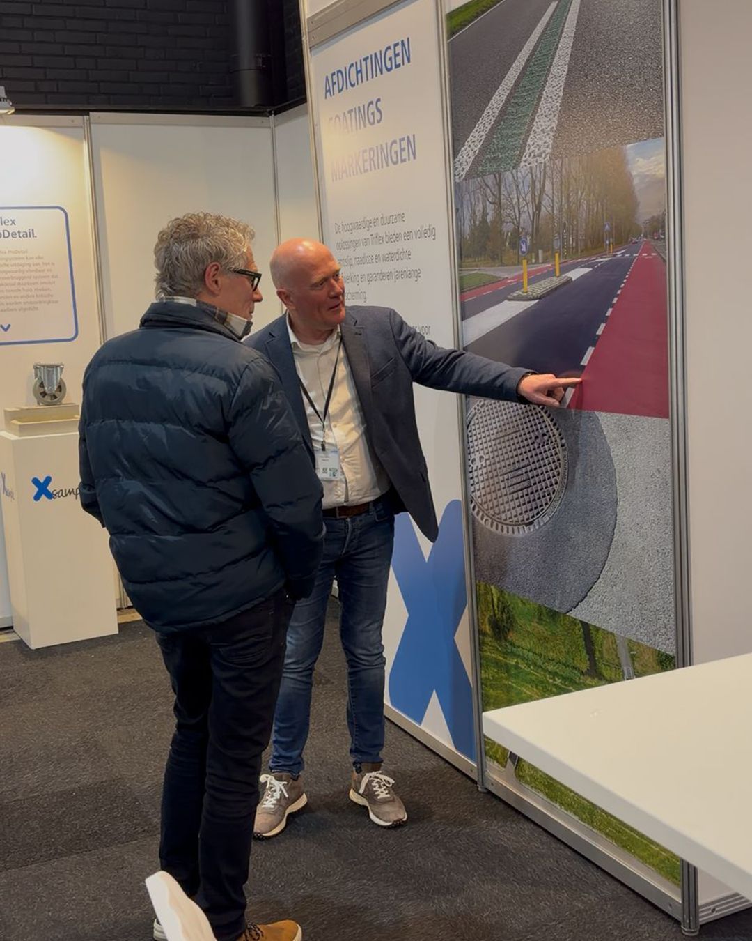 Tijdens de beurs presenteerden Hans en Stephan onze innovatieve oplossingen met vloeibare kunststoffen. Bezoekers konden bij onze stand terecht voor voorbeelden, inspiratie en advies over hoe onze producten kunnen bijdragen aan veiligere, duurzamere infrastructuurprojecten.