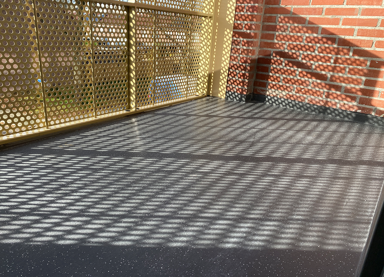 Voor de bovenzijde van de balkonvloeren koos de aannemer Hegeman Bouwgroep voor het Triflex BIS BTS-P systeem. Dit systeem zorgt er niet alleen voor dat de vloer goed geïsoleerd is, maar maakt hem ook waterdicht met een duurzame en beloopbare afwerking. Ideaal voor constructies die intensief worden gebruikt, zoals galerijen en entrees.