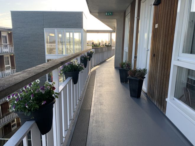 Het is ook van belang dat een gebouw of constructie een veilige omgeving is voor bewoners of bezoekers. Door het aanbrengen van een antisliplaag op uw balkon- of galerijvloer is het mogelijk om comfort en veiligheid naar een hoger niveau te tillen. Naast de grotere oppervlakken, kunnen trappen ook perfect worden afgewerkt met Triflex.